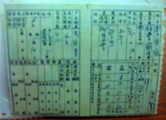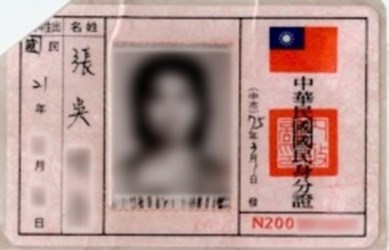 民國43年全面第一次換發國民身分證,仍為雙頁摺疊,並配賦個人「口號」,將領證年齡由18歲降為14歲,並刪除指紋符號箕斗記錄、公民資格、寄籍、義務勞動,另增加蓋戳記、戶籍記事等欄位。紙張為藍色,紙質中摻雜麻漿,兩面加印花紋,正面套印省政府大印,貼相片處加軋有洞鋼印,相片左下方加雞眼釘,以防偽變造。