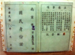 當時國民身分證為雙頁折疊,顏色為白色,發給對象為18歲以上國民。且因當時相片並不普及,故未全部貼有相片,而是在國民身分證「指紋符號」欄位中,以「○」、「ˇ」記錄左右手指紋,類似同心圓的「斗」狀紋路,以「○」記錄;如畚箕狀的「箕」狀紋路,以「ˇ」記錄。不過登錄指紋的工作,因戰亂並未確實執行。
