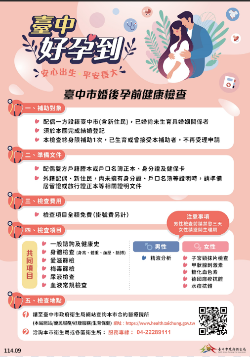 (一)本計畫補助對象為配偶一方(含新住民)設籍本市已婚且尚未生育者。