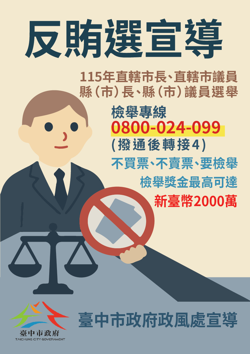 【宣導】115年直轄市市長、直轄市議員、縣(市)長、縣(市)議員反賄選宣導